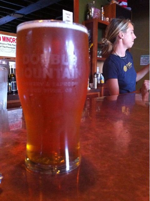 As I mentioned in my last post, I stopped at Double Mountain Brew Pub around the corner from Full Sail to have some dinner. I was told they had the best pizza in town, so that’s what I ordered. When my food arrived, it was also time for another drink. I was debating between a couple of their beers, but a local sitting next to me recommended the Hop Lava. The menu says, “This big, glowing, powerful IPA is packed with copious amounts of Northwest hops. We balance the considerable hop flavor with a sturdy backbone of malty goodness. The result? Explosive! Our flagship IPA. Brewed with Gambrinus Pilsner and Munich malt, Centennial and Cascade hops. 7.0% ABV, 75 IBU.”