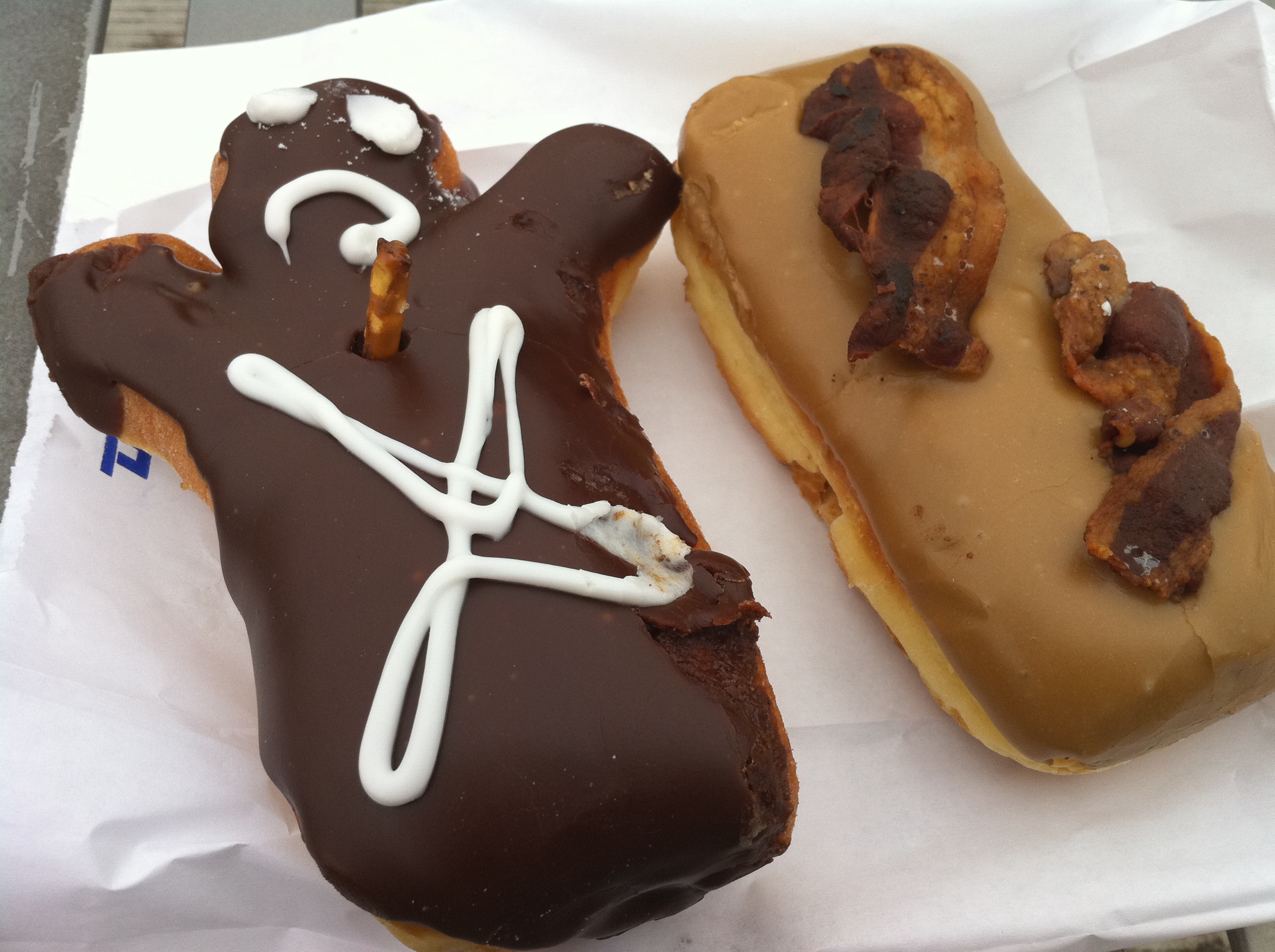 I had a great time at the Oregon Brewers’ Festival yesterday, and today I wanted to explore downtown Portland a bit. This morning, I stopped at Voodoo Doughnut – a well known doughnut place, known for it’s eclectic atmosphere and strange donuts that I’ve seen on several shows on the Travel Channel and Food Network (see my picture on the right, and you absolutely must try their maple bacon bar if you ever make it to Portland). I also took some time this morning and created an update video for my Brewmaster Cusinternship (see the video on the right). I also stopped by the Apple Store to pick up a case for my iPhone, but that was a failure. After walking around a bit, I headed south on the riverfront to meet up with a friend and co-worker. After a brief conference call for work, we headed up the aerial tram for some gorgeous panoramic views of the city (see right). Then we stopped for some sidewalk lunch at a nearby bakery and she ran up and grabbed this MacTarnahan’s Amber Ale, telling me it was a classic Portland brew.