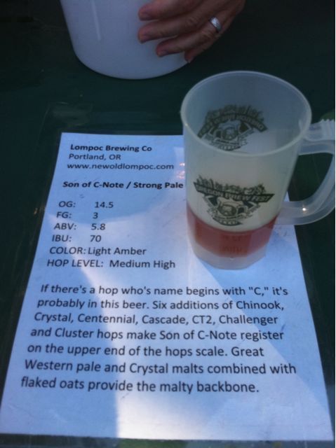 When served it had a light coppery color to it, and (as all the beers at the festival did) a nice creamy head. The aroma was a nice big piney and grassy hop smell, that was very pleasant.