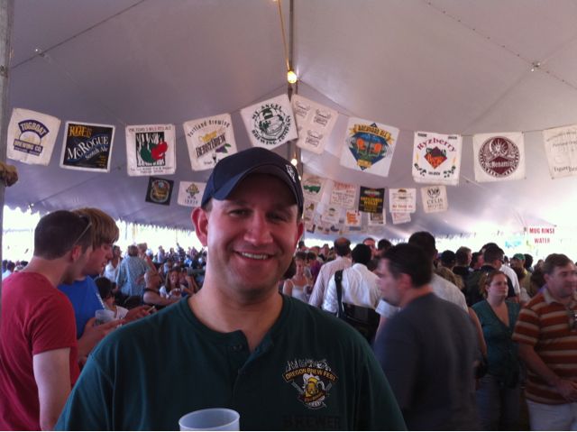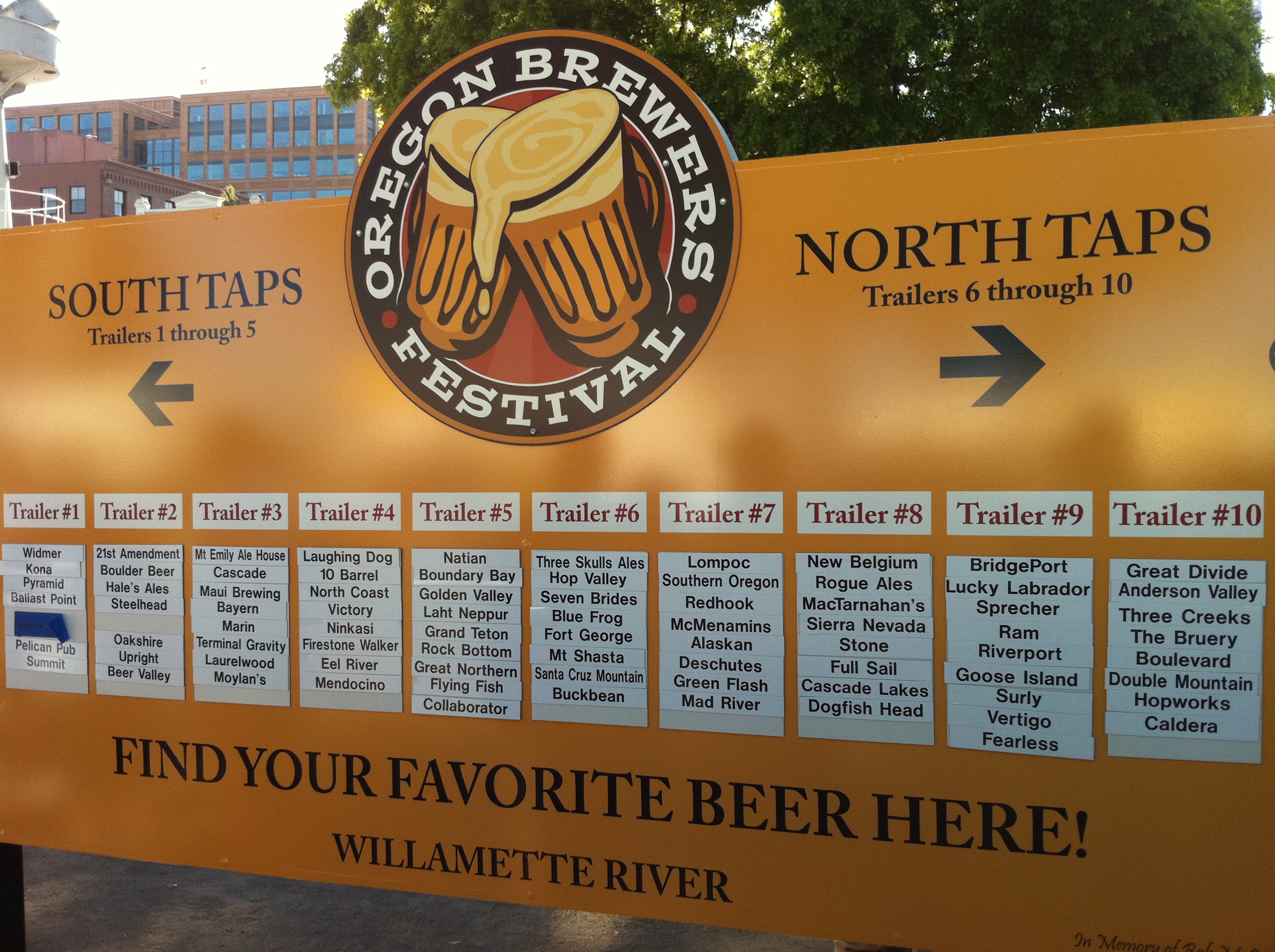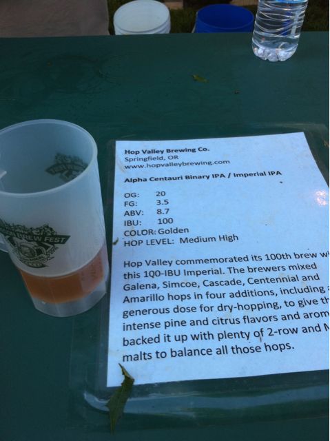 As you can tell by the big grin on my face on the right (which never went away the entire time I was in Oregon), I was having a great time making the rounds at the Oregon Brewers Festival. As you can tell by the other picture on the right, I still had to make it through a lot more beers at the festival. There were almost 80 different beers there under two enormous tents. I had never heard of Hop Valley Brewing, but simply by the name, I figured it was from Oregon (and sure enough, it was in Springfield, OR). I found out that this beer was named because it was the 100th beer brewed at their brewery. And, even after battering my tastebuds on the top two hoppiest beers at the fest (Lucky Labrador’s Summit IPA and Terminal Gravity’s Single Hop Double IPA), I thought I’d try this 100 IBU beer. I found it hilarious that despite this being one of the top hoppiest beers at the festival and it having 100 IBUs (the human palate can’t taste bitterness past this level), they listed on their sheet that the hop level was “Medium High.”