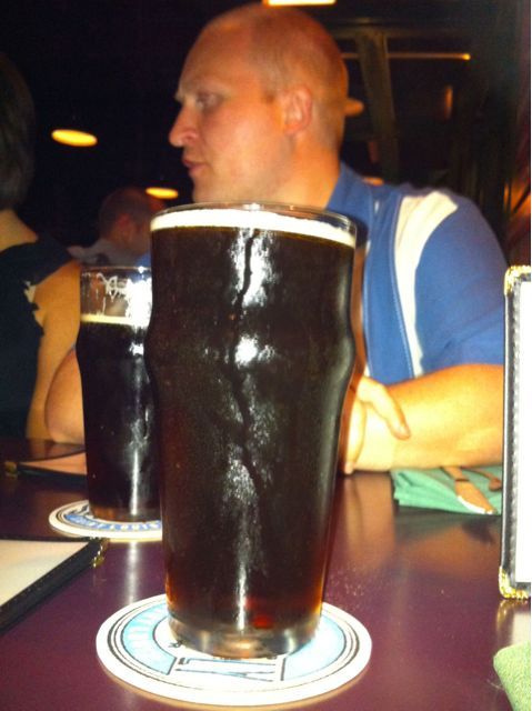 It was obviously deep brown in color and it had a creamy, thin white head on it. There was a very citrusy hop aroma to it.