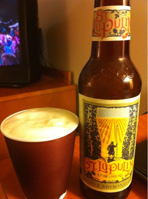 A friend from my homebrew club – the ABNormal Brewers – mentioned that he had met someone from Odell Brewing and was a big fan of their beers.  And, since we don’t get them in central Illinois yet, I thought I’d give their seasonal – St. Lupulin Extra Pale Ale – a try.  It helps that I suspect by the name that it’s going to have a nice hop flavor to it.  The bottle says, “A mystical legend echos in our brewhouse – that of St. Lupulin the archetypal hophead.  He devoted endless summers to endless rows of hops, tending to the flowers and the beloved resin within – lupulin.  Extraordinary oils in this yellow resin provide this dry-hopped extra pale ale with an undeniably pleasing floral aroma and clean, crisp finish.  One sip of this seasonal summer ale and you, too, will believe.”