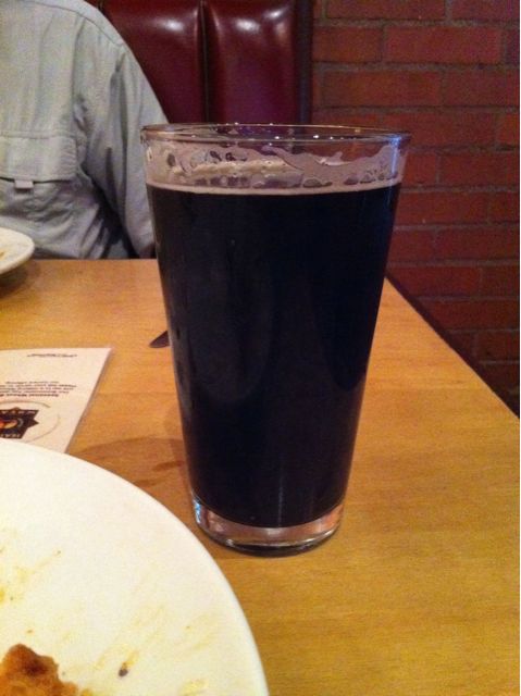 I think this beer would probably go well with their BBQ ribs, as the flavors of the BBQ might bring out the roastiness of the malt a bit. The lightness of the beer wouldn’t fill you up as the ribs might.