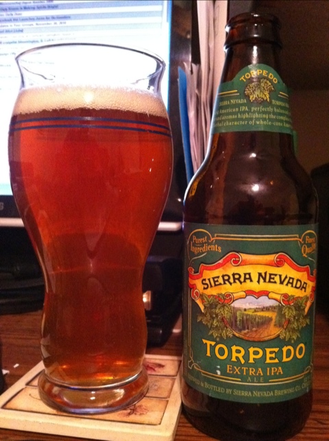 It was pretty clear with an light orange/copper color and a big, creamy, bright white head on it (which left some great lacing on the glass). The label didn’t lie, as there was a very nice piney and citrusy aroma to it.