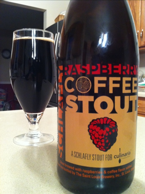 I found out about this beer a few months back from STLHops, and I knew I had to try it. St. Louis Brewery/Schlafly, makes a very good coffee stout (review coming soon), and I think it has a lot to do with the Kaldi’s coffee they use (and the cold steeping process for extracting the coffee flavors). I had never thought of a coffee-raspberry combination before, but once I had heard of it, I knew that it sounded pretty good.