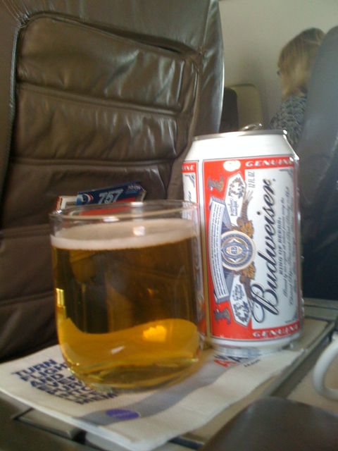 Now that I’ve gotten more into craft beers, I had to laugh at how much “flavor” I thought Bud had (compared to Bud Light). There really isn’t much flavor to it. It does have a somewhat bready/yeasty character that I’m wondering if it comes from the beechwood aging (I’m not sure what beechwood tastes like). I do have to admit though, that almost anything will taste better when you’re sitting in first class on a long flight.