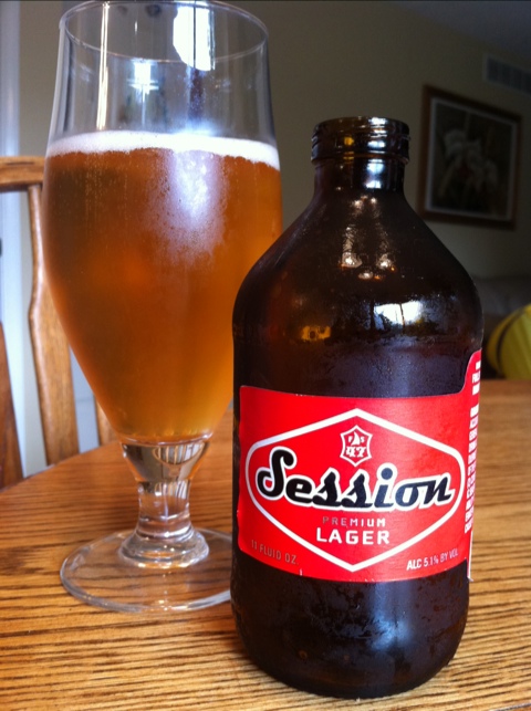 Full Sail Session Premium LagerWhile I was brewing out in the garage today, I thought it would be a good time to clean out the beer fridge.  It’s packed so full, I wasn’t exactly sure what I had in there.  Well, I found this Full Sail Session lager shoved way in the back.  I got this beer at the end of last summer when I did my Cuisinternship at Full Sail.  I knew it was past the date, but, having had the opportunity to try it fresh at the brewery – as well as taste test what the beer tasted like after being aged in the lab, I knew exactly what to expect.