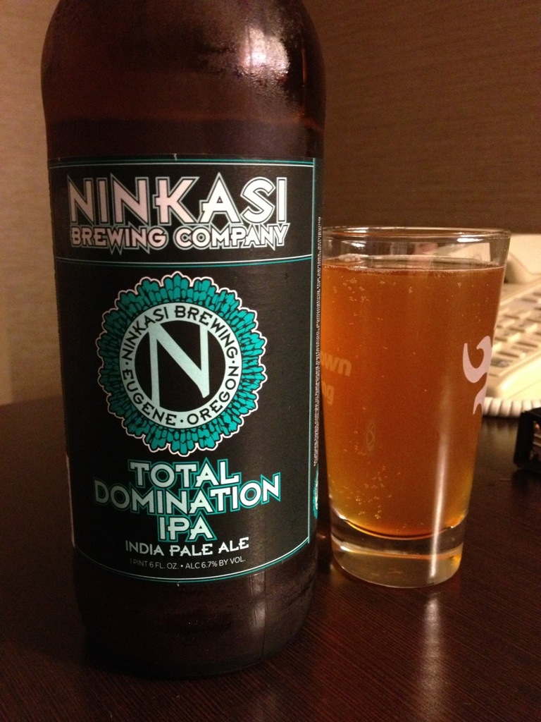 Overall Impression: With the name “Total Domination” I was expecting an over the top, hoppy IPA. I’d say that, instead, it was a fairly blanaced, solid IPA, with a good dose of west coast hops. While the flavors were pretty good, I felt it could have used a little more body. Overall, I thought it was a pretty good, flavorful, drinkable, IPA.