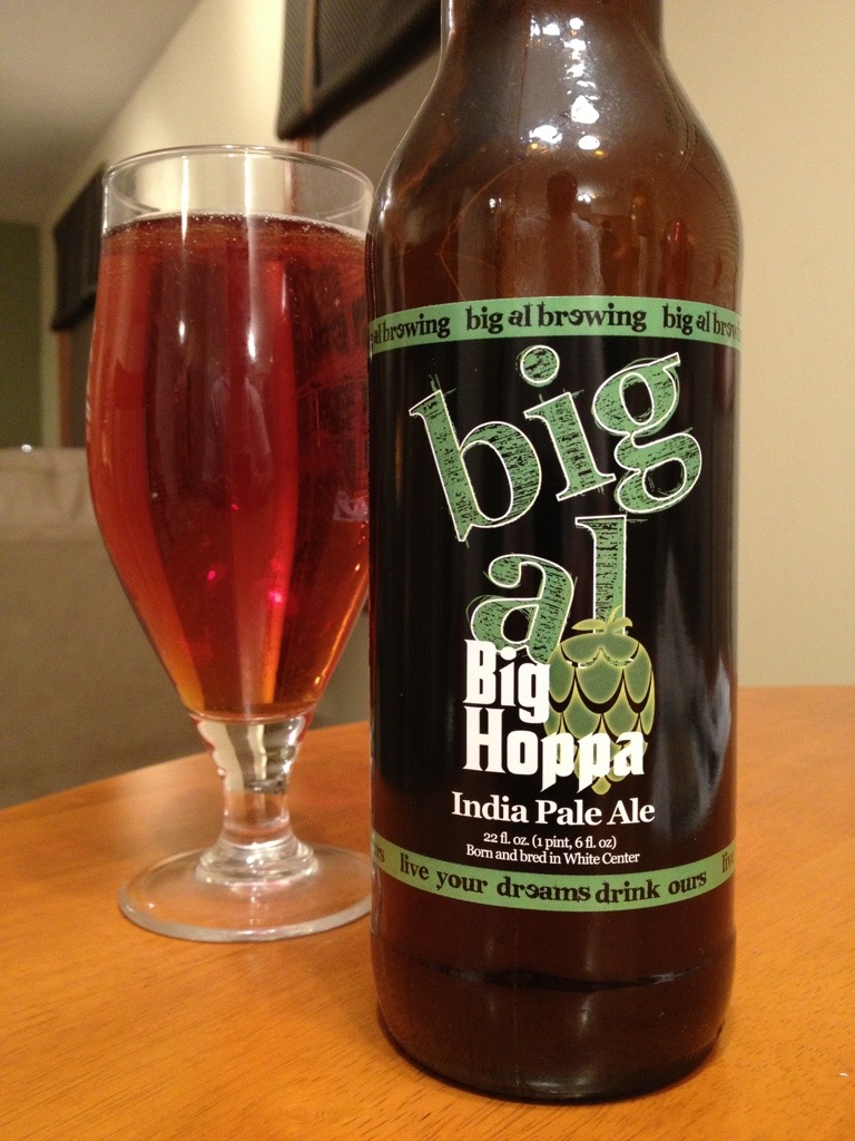 Overall Impression: With a name like Big Hoppa, I was expecting a huge hop bomb of a beer, but it was a very drinkable IPA with a good amount of bitternes, and a decent caramel malt backbone. It’s got a good, smooth bitterness and hop flavor that I enjoyed. On my next visit to Seattle, I hope I get a chance to stop at Big Al Brewing and try a few more of their beers.