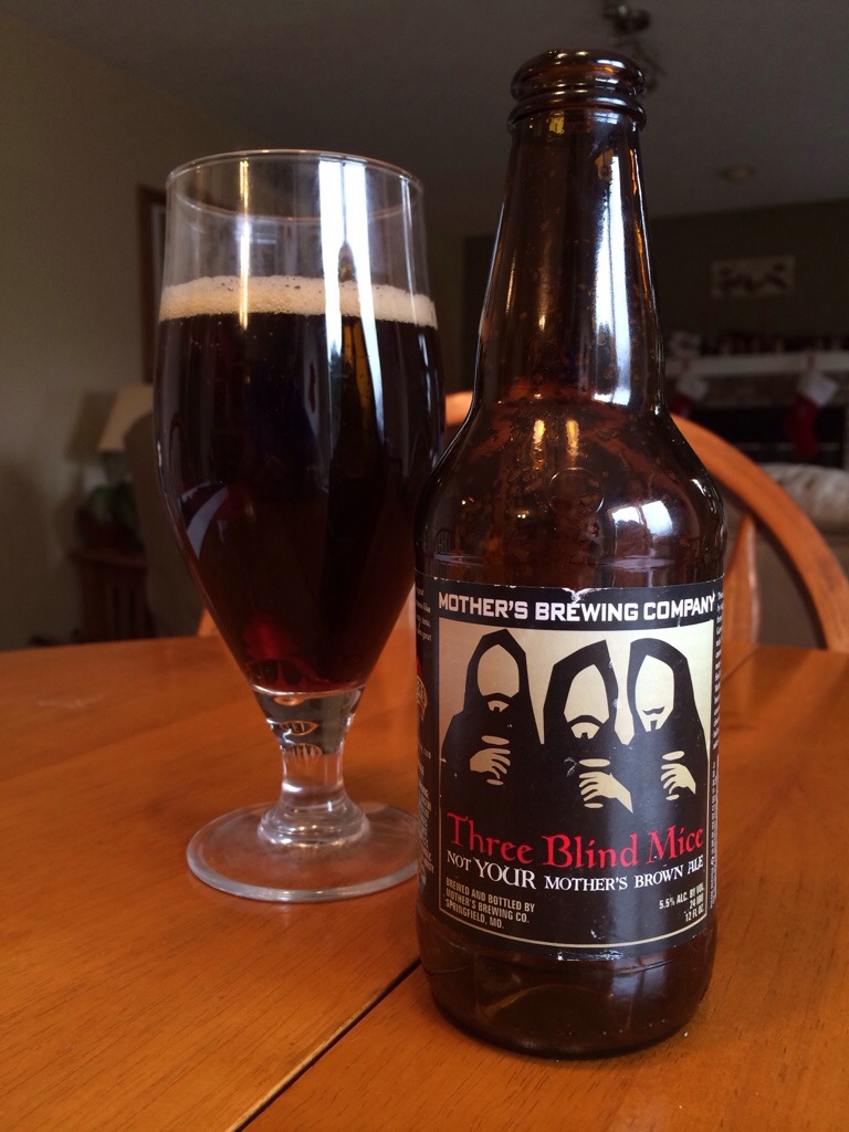 The bottle says, “Three Blind Mice is inspired by our favorite qualities from English brown ales, German altbiers, and Irish reds. Mother’s trio of beer connoisseurs sipped away many a night, working to find this ideal combination. Mother’s beautiful brown beer is medium bodied with caramel, coffee, and subtle chocolate malt flavors – all balanced by moderate hop notes and a clean, dry finish.
