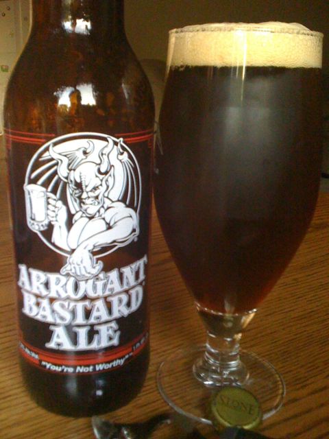 The bottle says, “This is an aggressive beer. You probably won’t like it. It is quite doubtful that you will have the taste or sophistication to be able to appreciate an ale of this quality and depth. We would suggest that you stick to safer and more familiar territory – maybe something with a multi-million dollar ad campaign aimed at convincing you it’s made in a little brewery, or one that implies that they’re tasteless fizzy yellow beer will give you more sex appeal. Perhaps you think multimillion dollar ad campaigns make a beer taste better. Perhaps you’re mouthing your words as you read this.” Additionally it defines arrogance as “The act or quality of being arrogant; haughty; undue assumption; overbearing conceit.” It also says it is 7.2% ABV.
