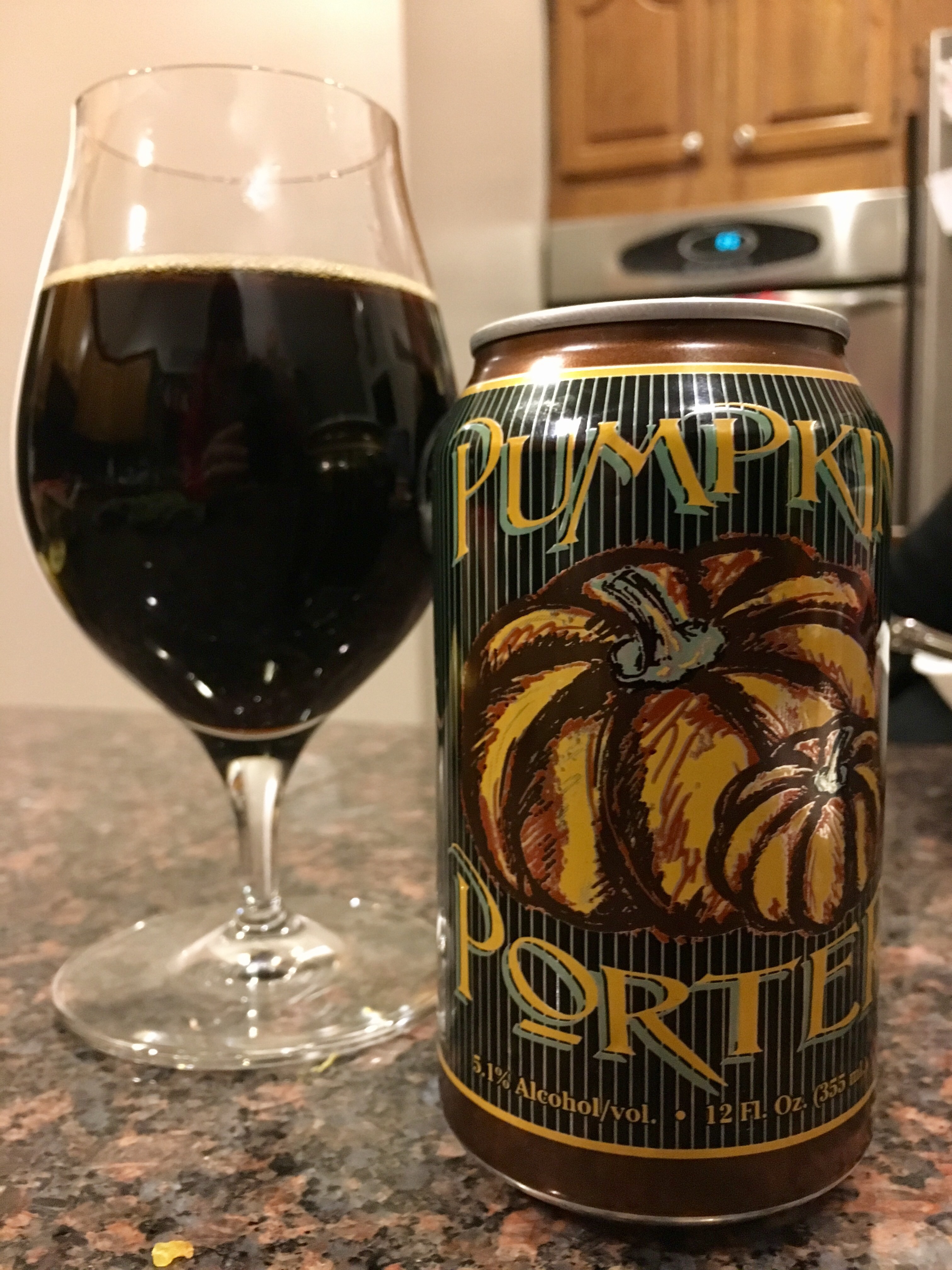 Overall Impression: Readers know I’m a fan of pumpkin beers and have had many of them. I prefer a pumpkin beer that tastes like a slice of pie in a glass. The pumpkin pie spices in this beer were very light, and there was almost no vegital pumpkin flavor I usually get from beers that use real pumpkin. The oily texture was a bit odd as well. Overall, it was a decent light Porter, but the pumpkin part of it was pretty weak.