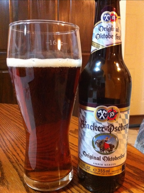 The first true Oktoberfest from Germany on the list, this Märzen is clear brown-amber in color and has a very nice, very pronounced malty, caramel aroma. It tastes pretty much how it smells – very malty, toasty, and caramelly. There are some hints of bread and biscuit, and overall, it’s a very flavorful, but very drinkable Oktoberfest.